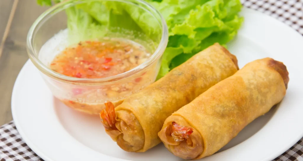 Мені дуже сподобалися спринг-роли в смаженому вигляді. Тут усе просто – робимо роли, як зазвичай, з будь-якою начинкою – найкраще з креветками. Потім розігріваємо пательню з невеликою кількістю рослинної олії і смажимо роли до золотистого кольору, повертаючи на пательні. Це займає хвилини три-п’ять.